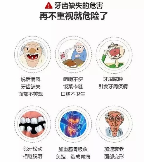 然而牙齿缺失不只是没有口福那么简单,除了影响形象,使得老态尽显之外,更会影响缺牙患者的身体健康。