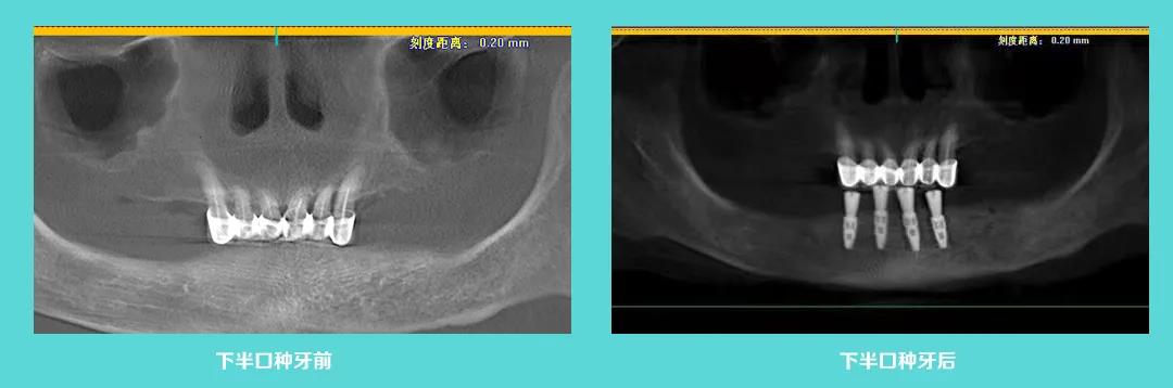 上图为数字化导板种植牙前后对比图,顾客原本骨头偏低,周围神经密集,利用数字化导板科学种牙,精准植入,避开神经,麦芽团队成功为一位七十多岁的老人种上新牙。麦芽数字化精准种牙,效果可预见,数字更精准,体验更舒服,稳定更持久。